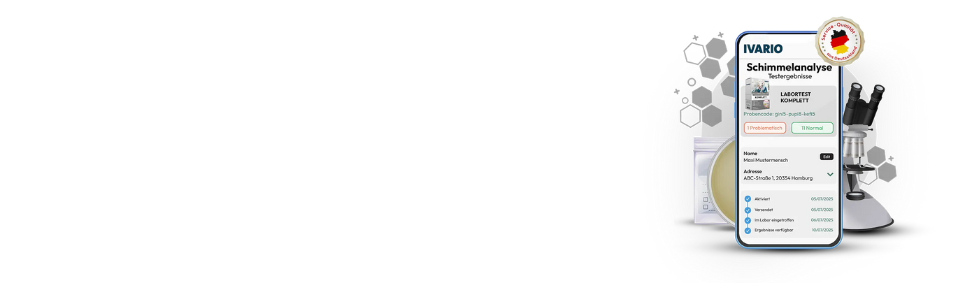 Schimmel kann in unseren Wohn- und Arbeitsräumen ein ernstzunehmendes Gesundheitsrisiko darstellen. Ob sichtbarer Befall oder unsichtbare Sporen in der Luft, es ist wichtig, die Art und das Ausmaß des Schimmelbefalls zu verstehen, um effektive Gegenmaßnahmen ergreifen zu können. IVARIO bietet eine Reihe von Schimmeltests an, die es Ihnen ermöglichen, diese Herausforderungen verlässlich anzugehen. Von einfachen Selbsttests bis hin zu umfassenden Labortests – finden Sie den passenden Test für Ihre Bedürfnisse.